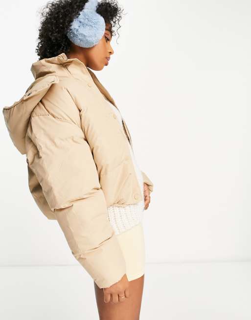 Product Name: Nude puffer coat with hood 2025